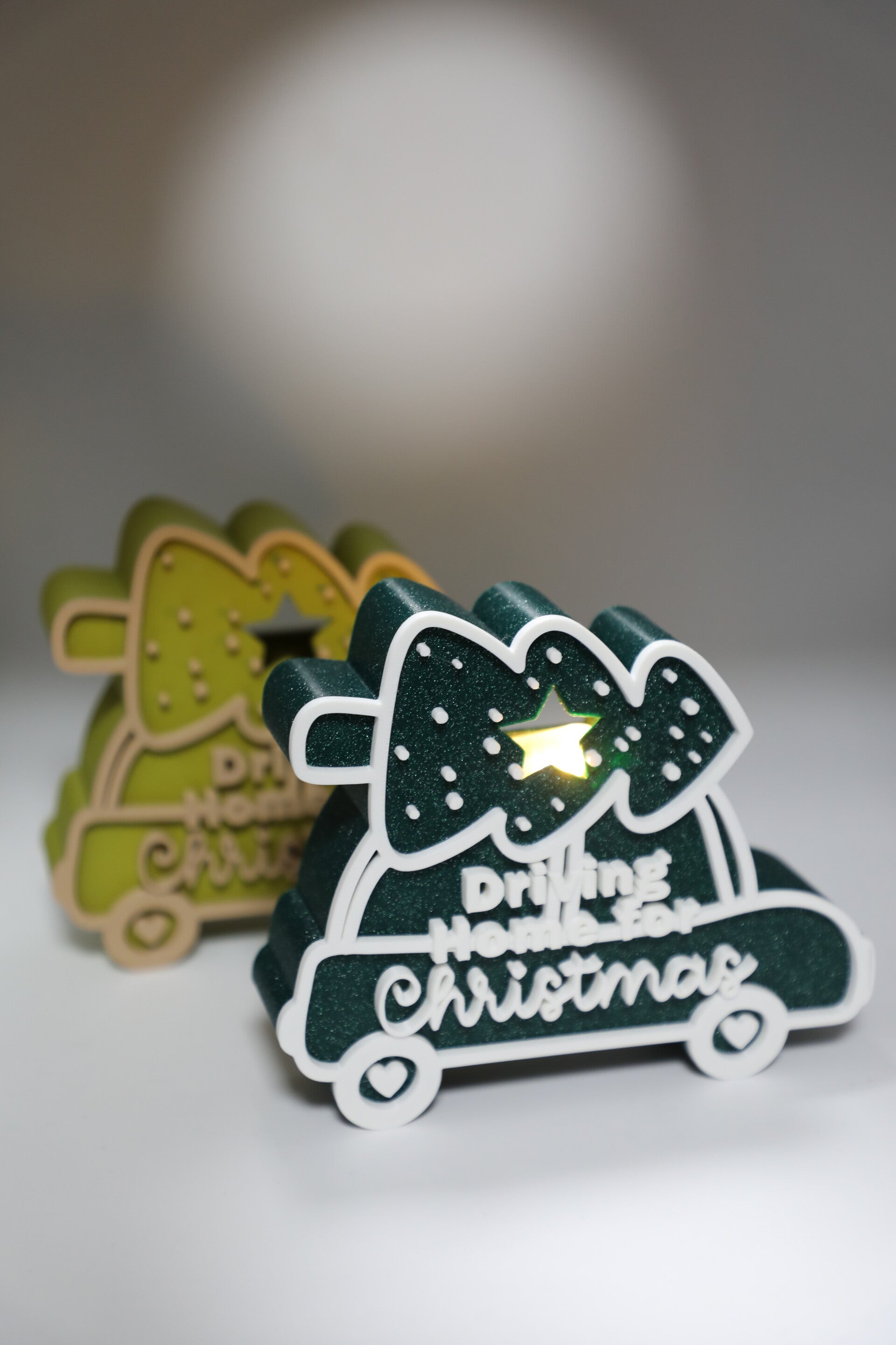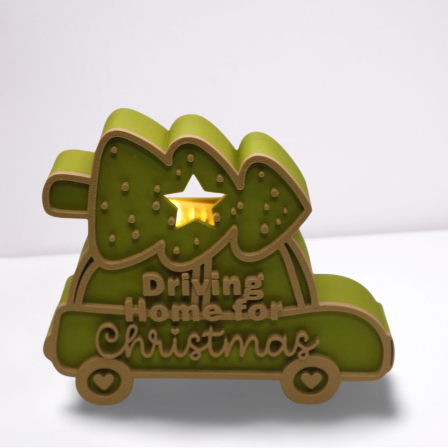 Ein liebevoll gestaltetes Dekoobjekt mit winterlichem Auto – perfekt für alle, die sich auf das Heimkommen zur Weihnachtszeit freuen.