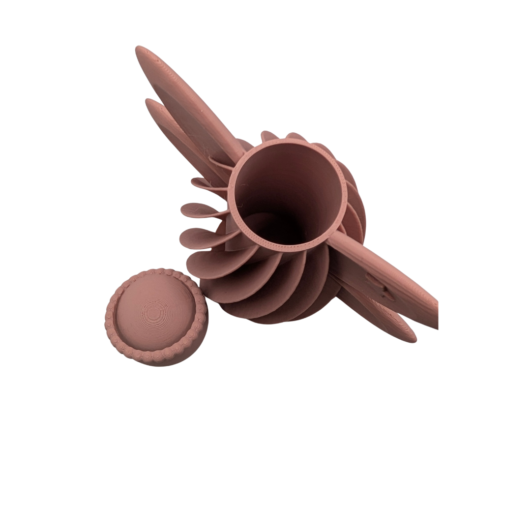 Jedes 3D-Objekt entsteht durch den schichtweisen Aufbau vieler feiner Lagen. Diese Technik verleiht dem fertigen Stück seine besondere Struktur. Je nach Betrachtung und Lichtverhältnissen können minimale Unebenheiten oder feine Linien sichtbar sein – ein charakteristisches Merkmal des 3D-Drucks.